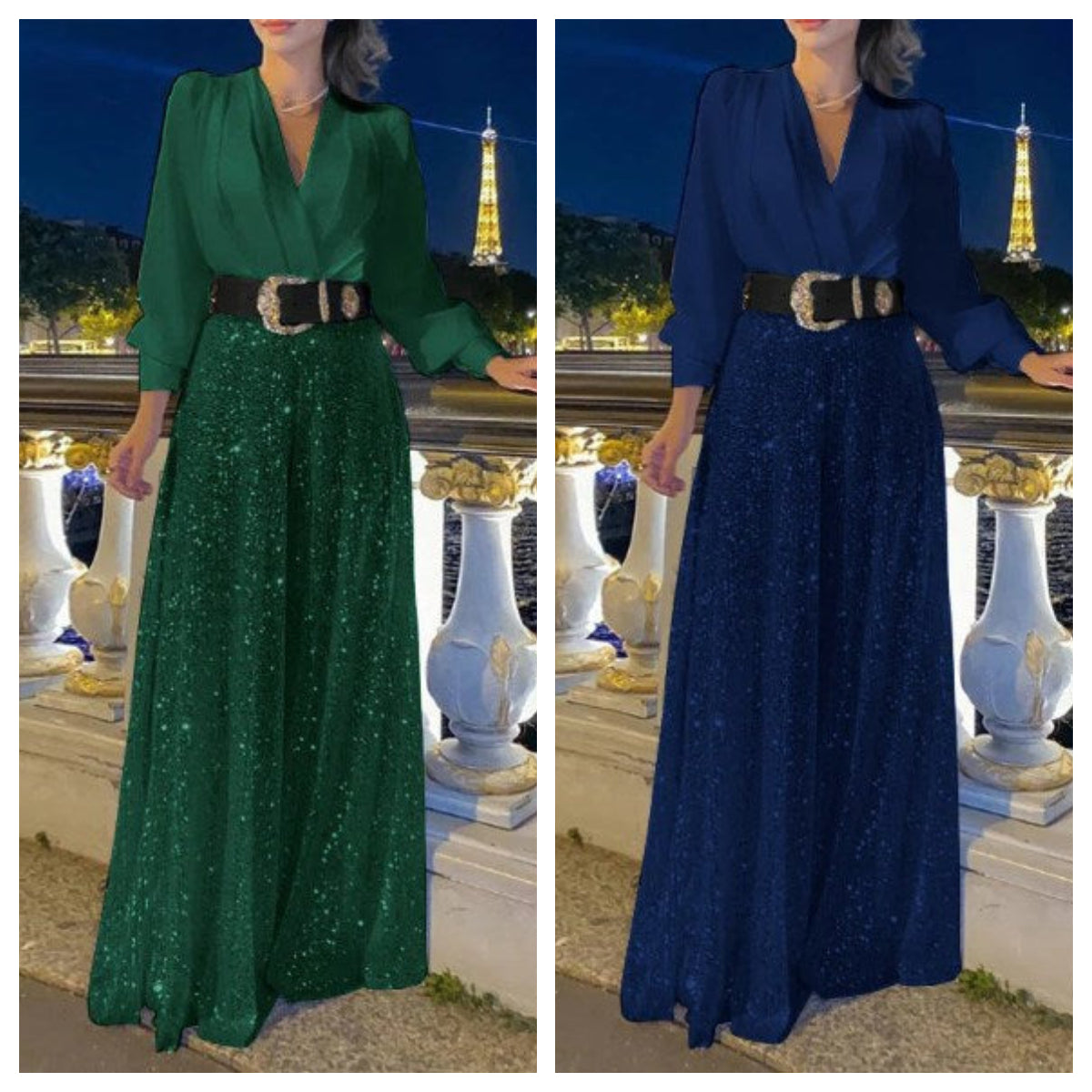💝Módní tričko s dlouhými rukávy a výstřihem do V + široké kalhoty s flitry-TAB