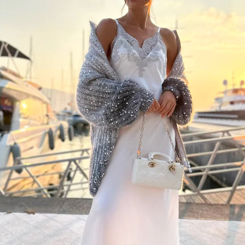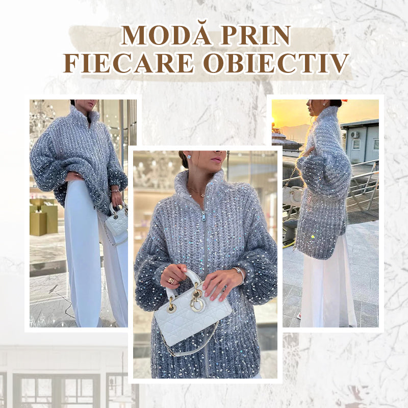 【✨Nové přírůstky 2025】🌈Dámský flitrový pletený svetr s celopropínacím zipem