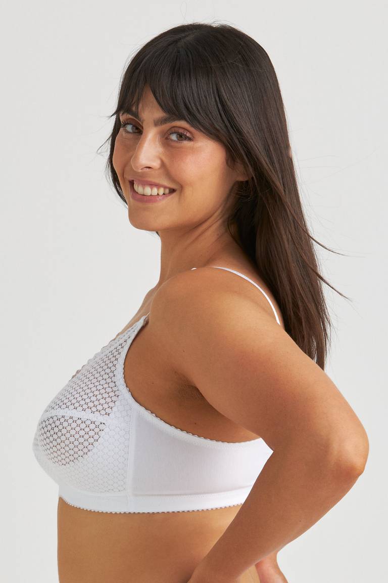 Cotton Dots je bavlněná podprsenka bez kostic, která poskytuje vynikající zvednutí a oporu. Podpůrný panel ve spodní části košíčků zvedá a odděluje prsa. Košíčky jsou vyrobeny z pevného, nevyztuženého, plného a vzdušného bavlněného materiálu, který umožňuje pokožce dýchat. Košíčky mají dvoudílný střih a mírně špičatý střih. Jsou ideální i pro ženy s výraznými křivkami - dostupné až do velikosti J! Elastická ramínka jsou snadno nastavitelná vpředu. Pružná záda ve tvaru U s nastavitelnými suchými zipy.