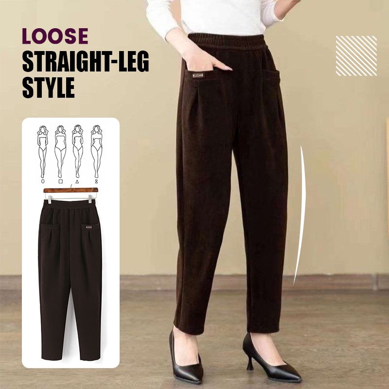 Zvenku vypadají jako stylové rovné kalhoty, ale měkký, hustý bavlněný plyšový vnitřek udrží vaše nohy v teple, teple a pohodlí jako vaše oblíbené legíny. Skvěle se hodí ke každému každodennímu outfitu!