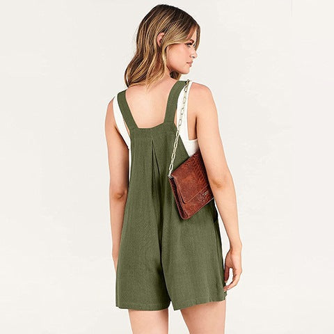 Konstrukce bez rukávů, čtvercový výstřih, aby mohl uvolnit ruce a dát vám prostor k houpání. Široké nohavice, krátký styl poskytují uvolněný, pohodlný střih, který nebude příliš těsný nebo omezující. S bočními kapsami, které se skvěle hodí pro uložení vašich nezbytností na cestách.
