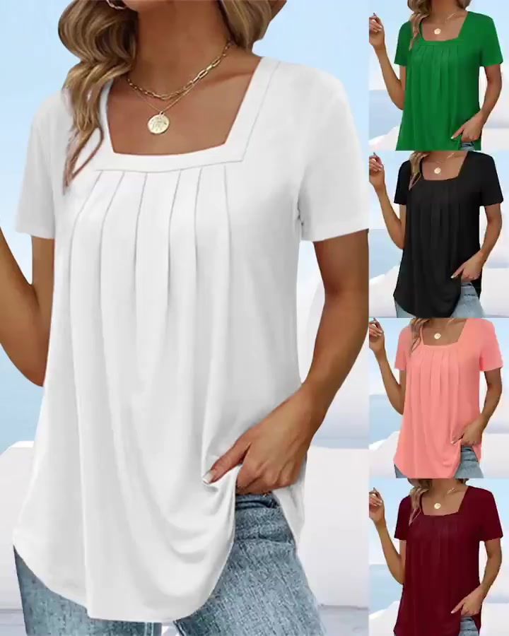 🎁Jednobarevné tričko s krátkým rukávem a čtvercovým výstřihem