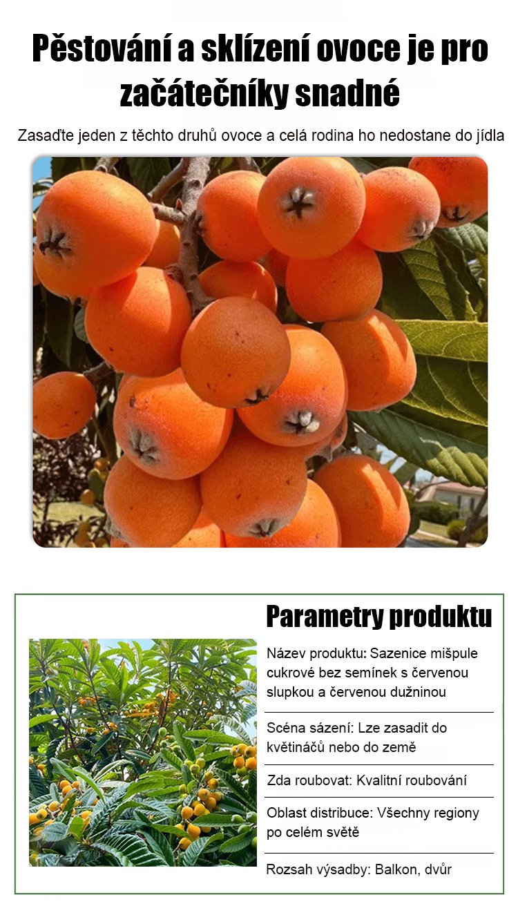 Bezsemenná sazenice lokvátu s červenou slupkou a červenou dužinou.