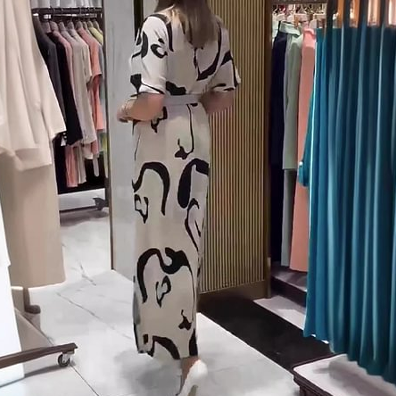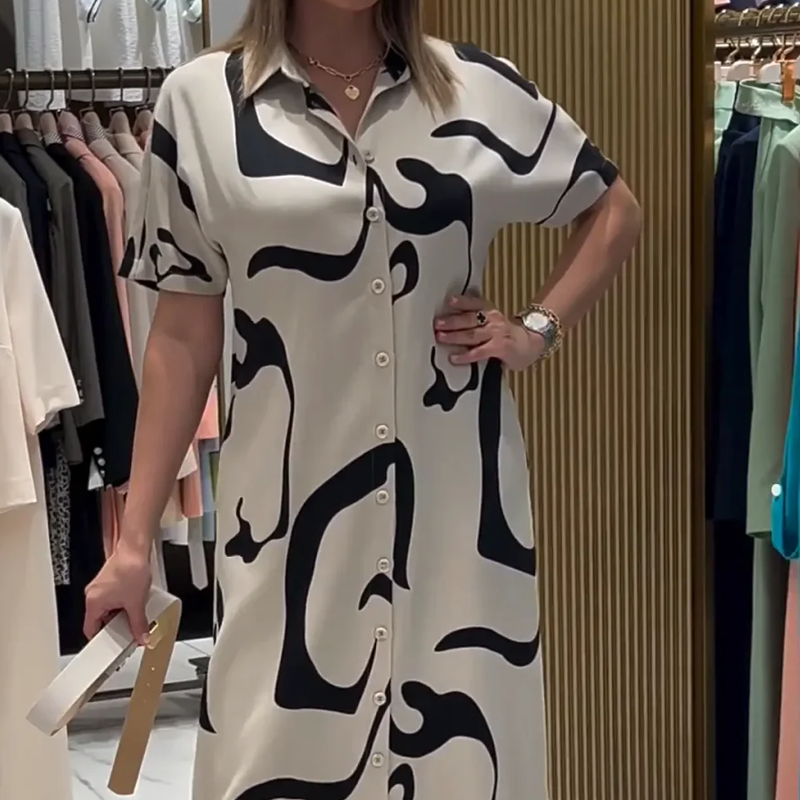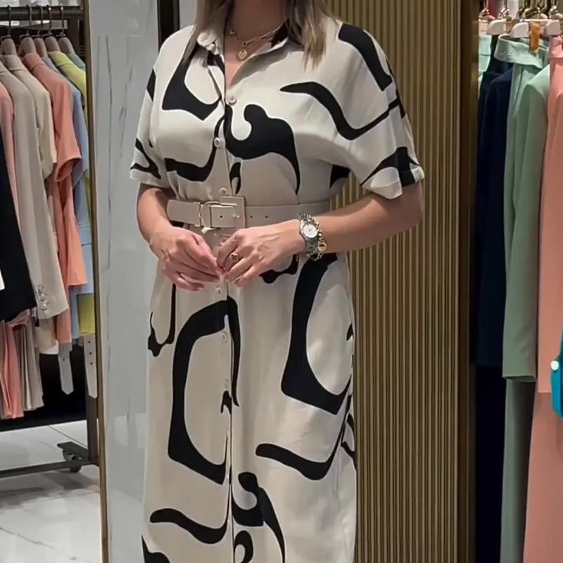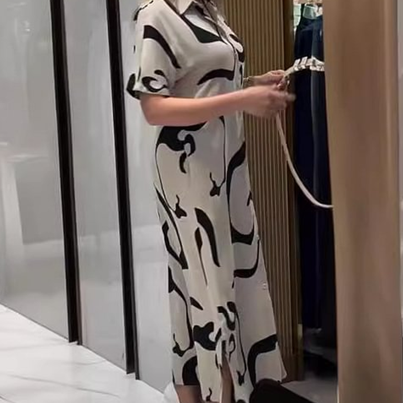 Dámské tištěné šaty s krátkým rukávem a dlouhým rukávem