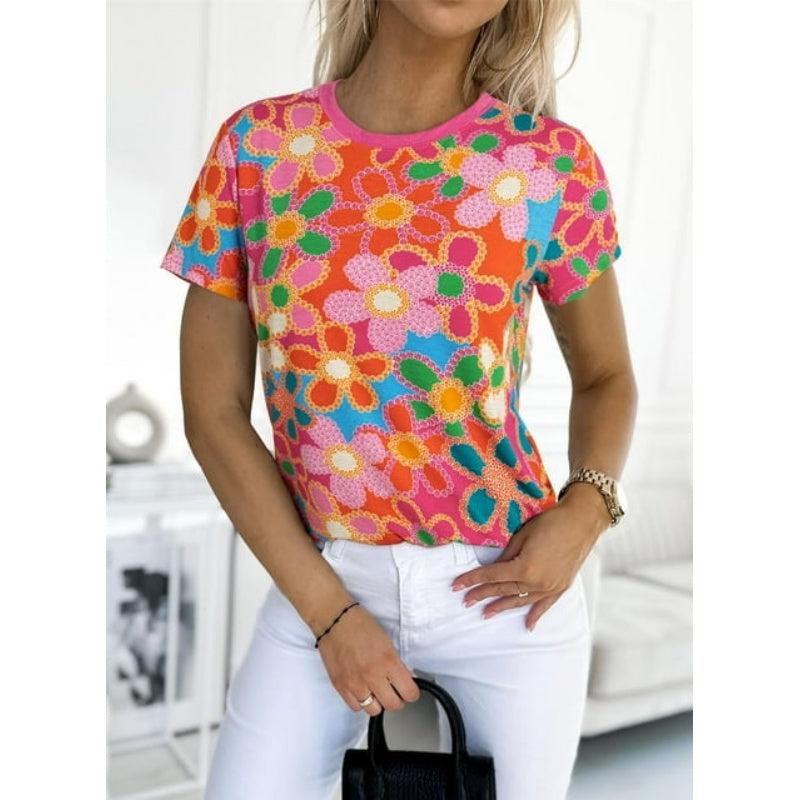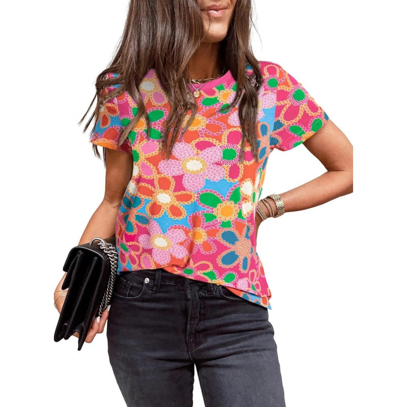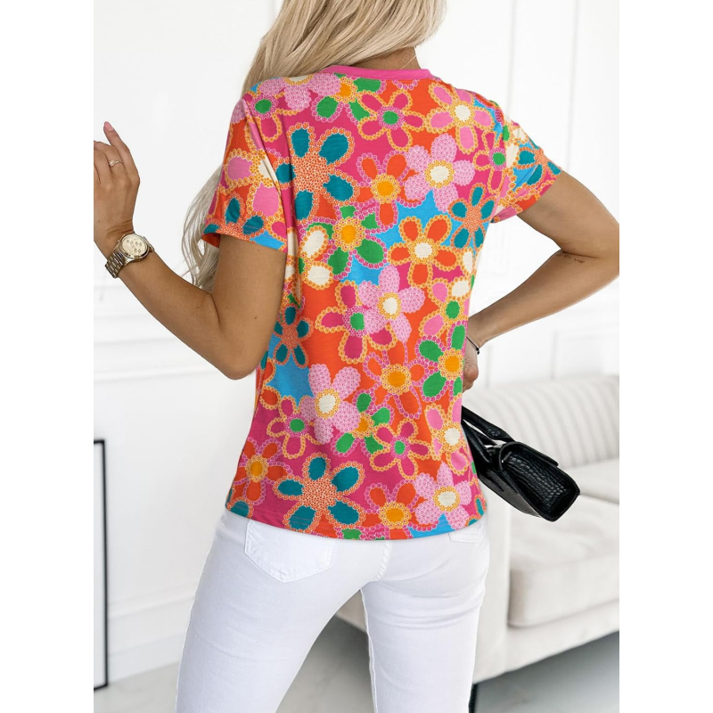 Balení produktu: 1* Dámské růžové tričko s květinovým potiskem