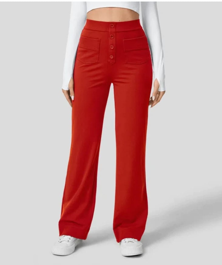 🔥49% SLEVA - 🔥- Dámské strečové kalhoty s vysokým pasem pro volný čas