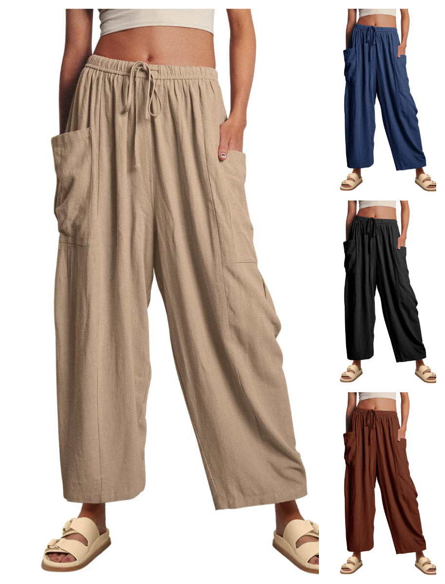 🍁Lehké bavlněné kalhoty s vysokým pasem