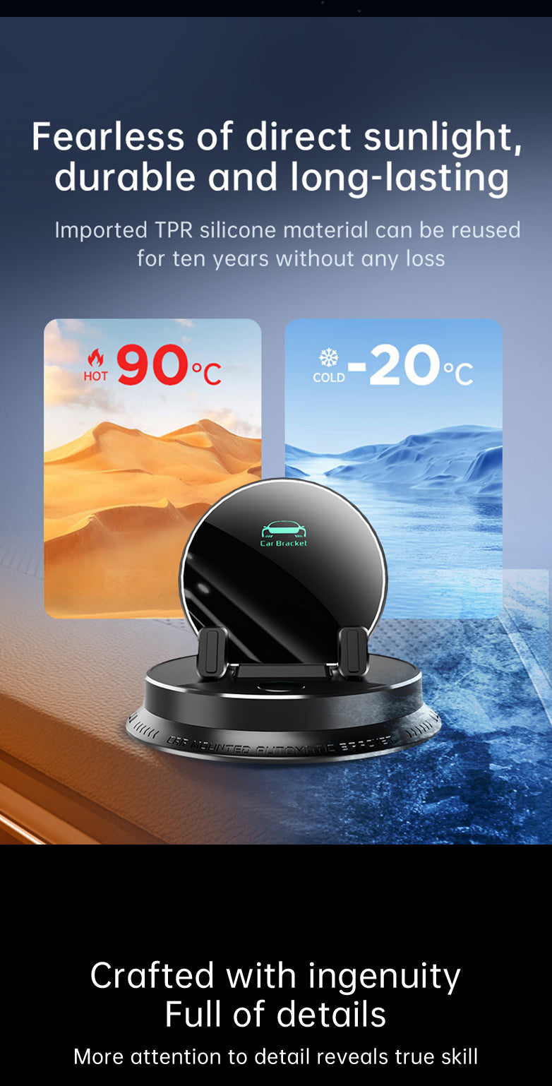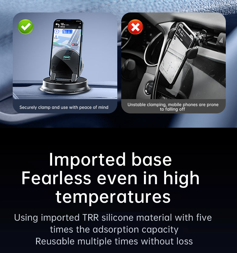 【Vysoce kvalitní materiály】 Příslušenství držáku telefonu do auta je vyrobeno z vysoce kvalitních materiálů ABS + silikon se silnou přilnavostí.