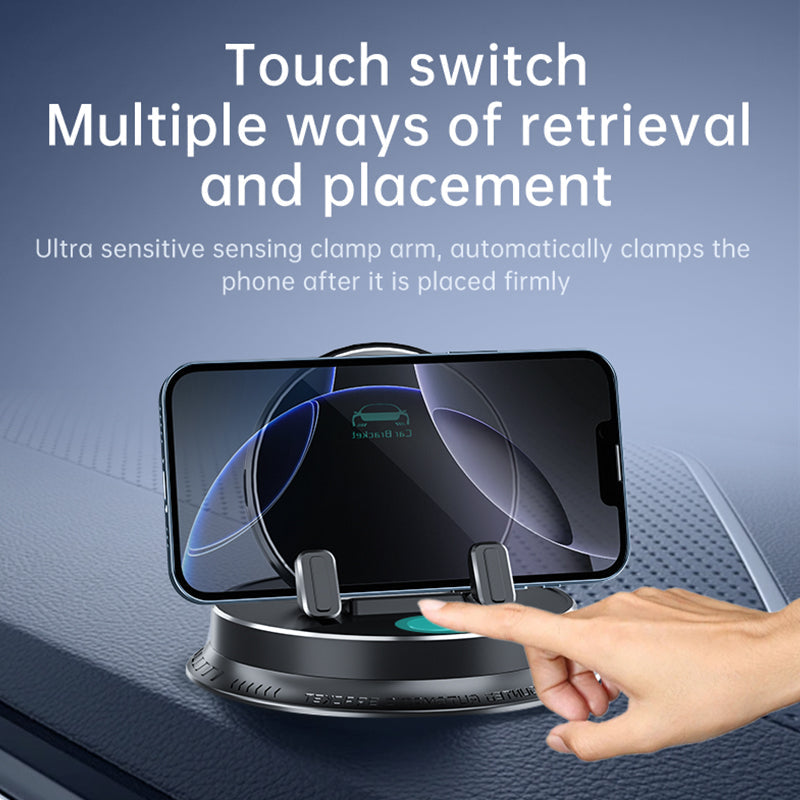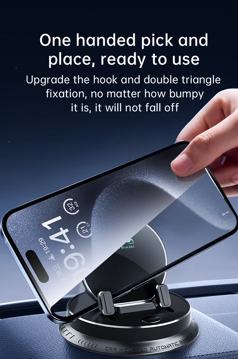 【Stabilní držák telefonu do auta】 K zakřivené základně je přidána vysoce kvalitní protiskluzová guma, kterou lze pevně připevnit k palubní desce. Robustní teleskopická svorka pevně drží váš telefon, zabrání pádu a přenášení smartphonu a zajistí, že se nebude třást ani na hrbolatých cestách.