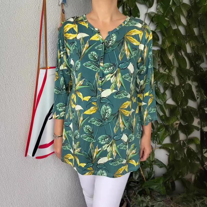 Dámský ležérní svetr 2025 s potištěným knoflíkem a výstřihem do V
