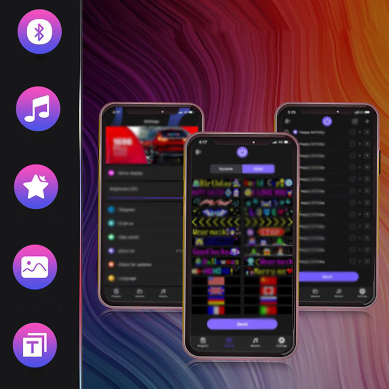 Ovládání pomocí chytrého telefonu: Snadné ovládání softwarové obrazovky prostřednictvím speciální mobilní aplikace. Vyberte si z různých vzorů očí nebo si vytvořte vlastní DIY vzory a textové animace a vyjádřete tak svůj jedinečný styl.