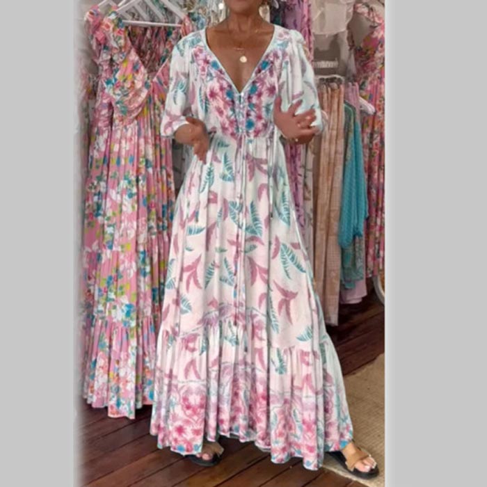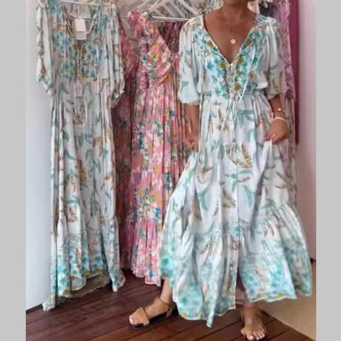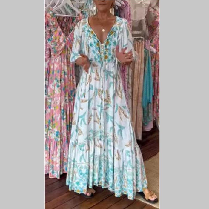 DESIGN INSPIROVANÝ ČESKÝMI VÝROBAMI: Živé potisky a splývavá maxi délka ztělesňují bohémský styl, díky čemuž jsou tyto šaty ideální na letní festivaly, plážové večery nebo neformální setkání a zároveň předvádějí svůj jedinečný smysl pro módu. Lze jej bez námahy spárovat s podpatky nebo sandály pro semi-formální a neformální příležitosti, což z něj činí všestranný základ šatníku.