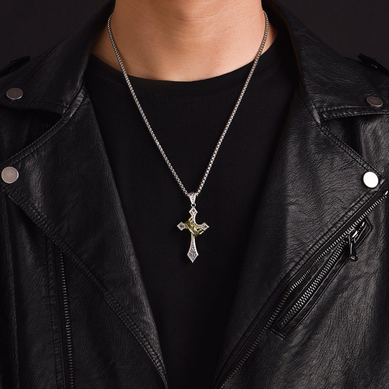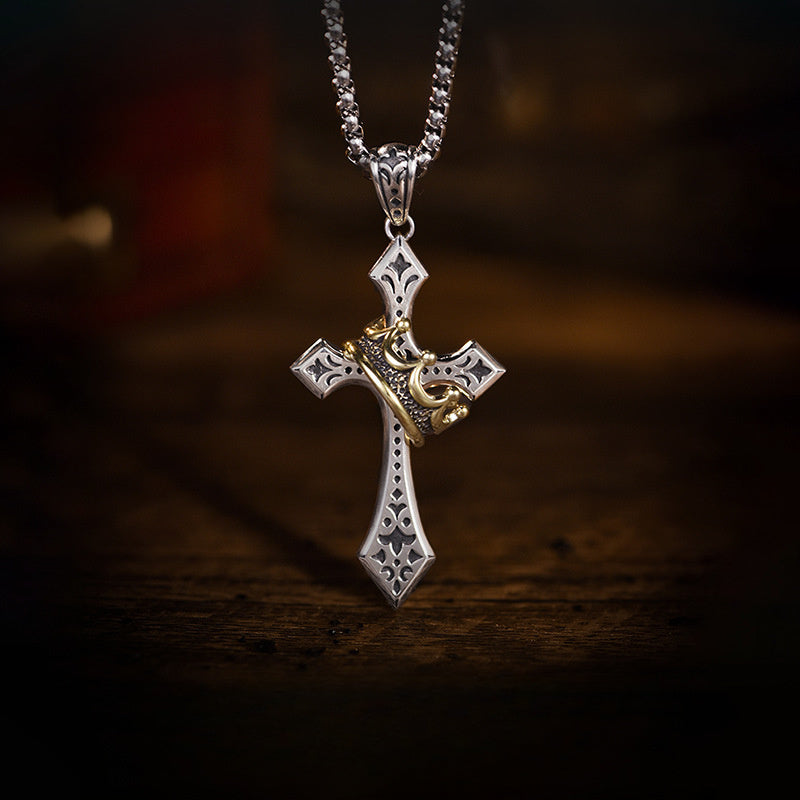Noste symbol božské autority a nebojácné víry . Přívěsek Kříž a koruna Království je odvážným spojením duchovní síly . Stříbrný kříž vyrobený z prvotřídní nerezové oceli je zdoben zdobenými výřezy a zakončený královskou zlatou korunou. Je to více než jen náhrdelník – je to výrazný šperk.