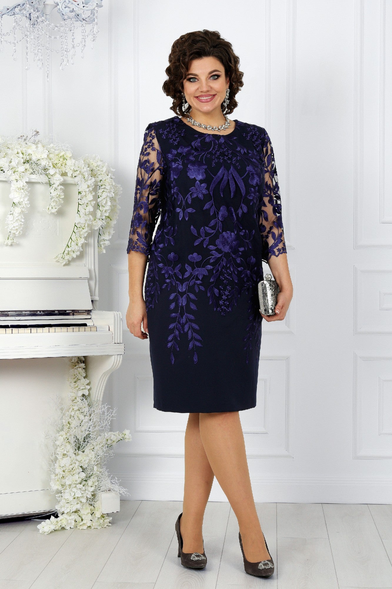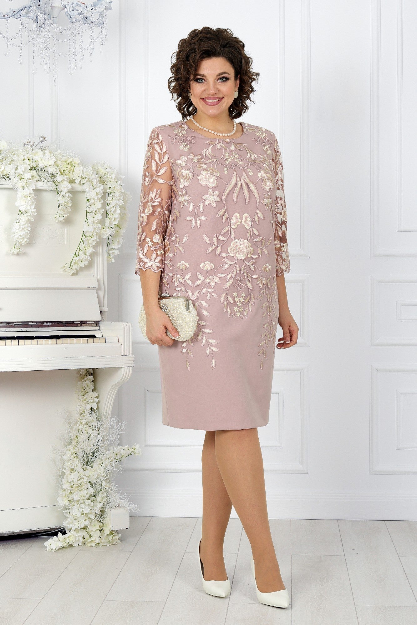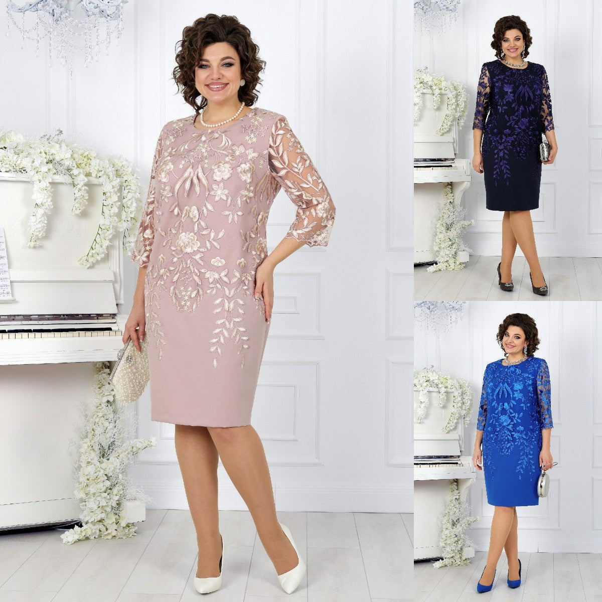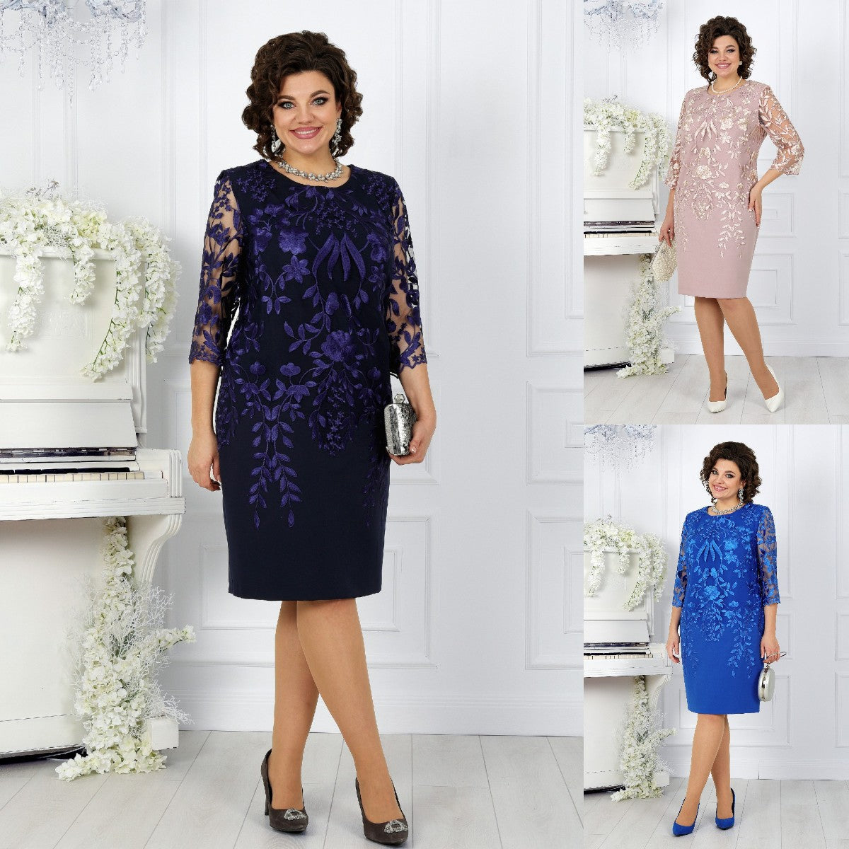 Oversized šaty s krajkovým patchworkem a potiskem
