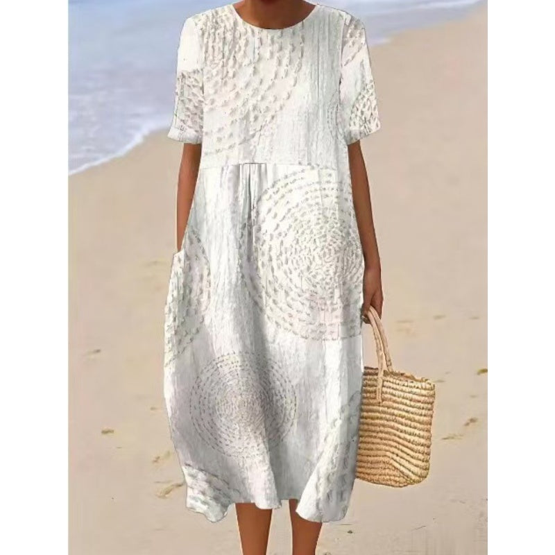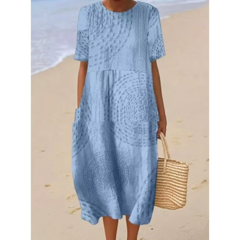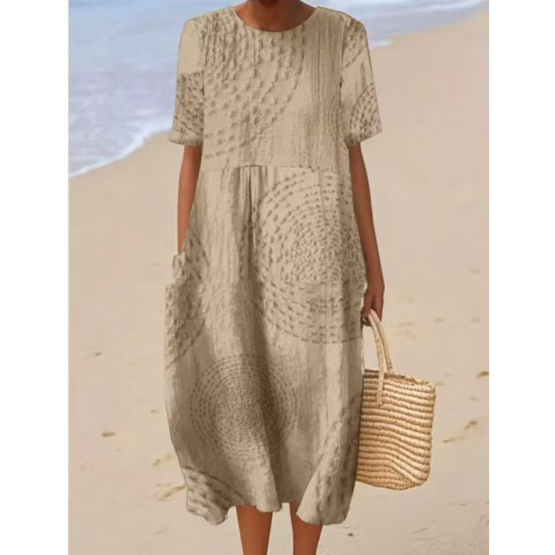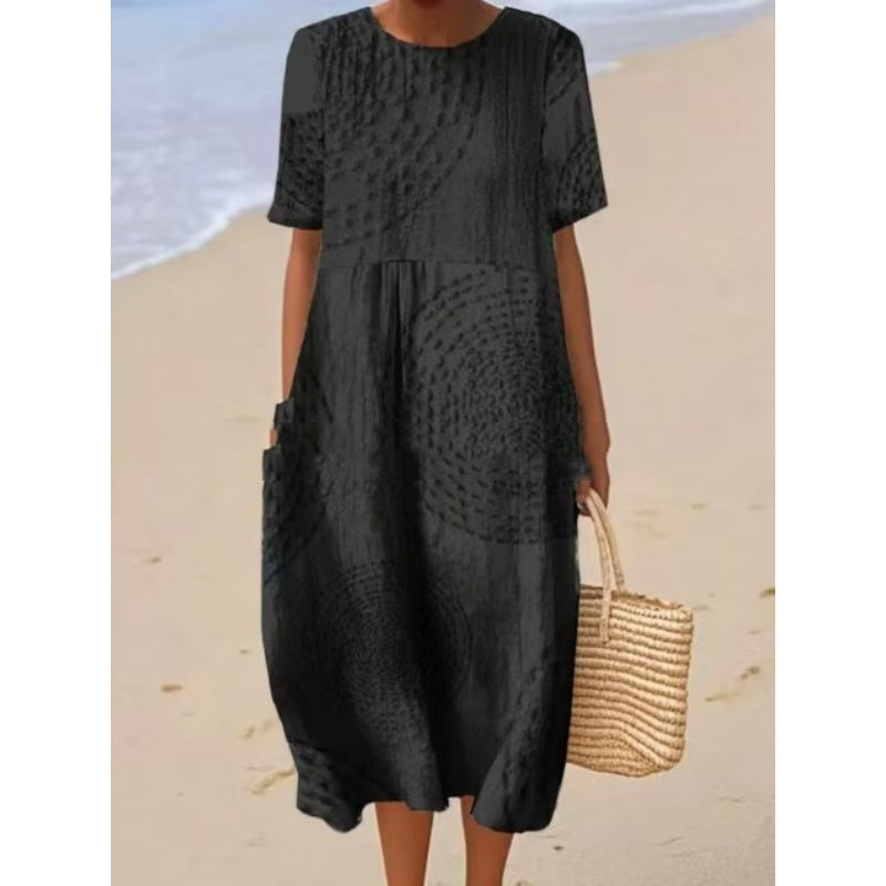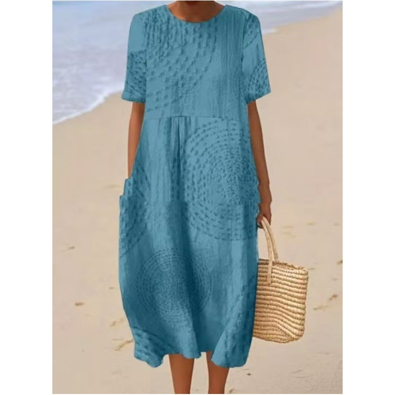 VOLNÝ STŘIH: Tyto midi šaty, navržené s ohledem na pohodlí, mají volný, uvolněný střih, který umožňuje volný pohyb a prodyšnost, takže jsou ideální pro každodenní nošení.