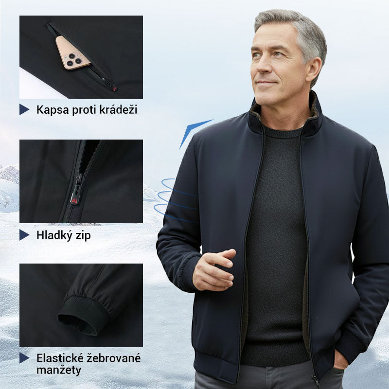 Pánská jednobarevná teplá bunda na zip –💪Odolná proti zmačkání, větru, dešti a sněhu!
