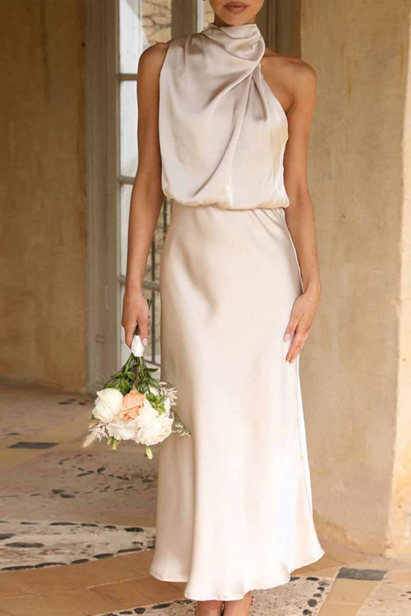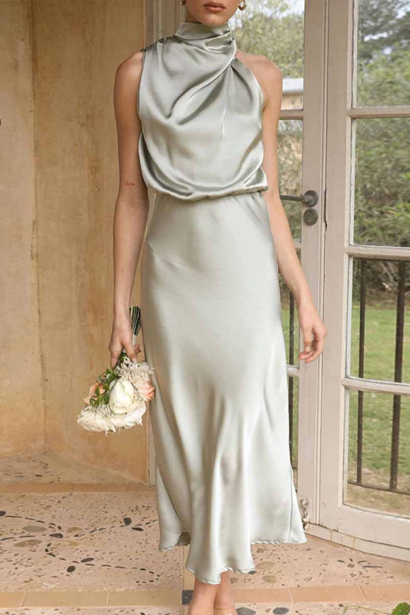 Dámské sexy společenské dlouhé šaty bez rukávů s výstřihem z pevného saténu