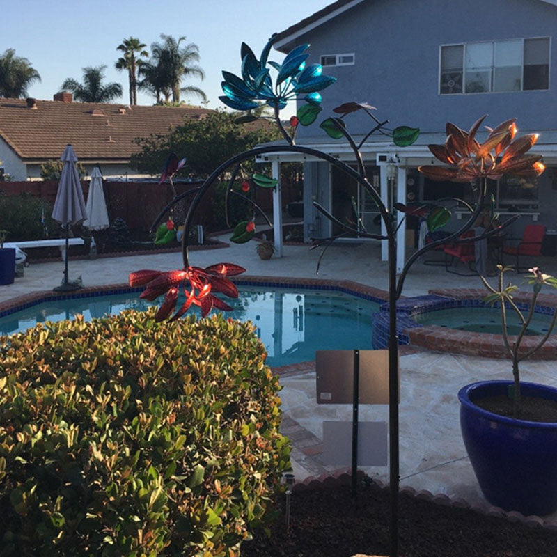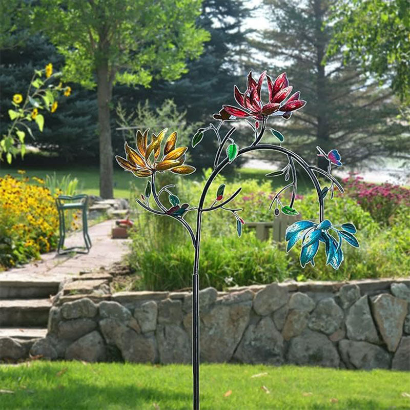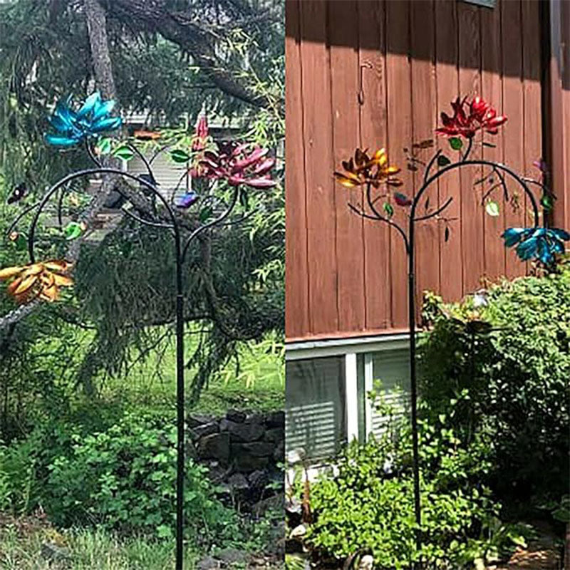 Užijete si krásný kinetický větrný mlýn venku s třístupňovou kaskádou žlutých, růžových a modrých květin a motýlích akcentů. Poutavý barevný květinový vzor se pohne s každým závanem větru.
