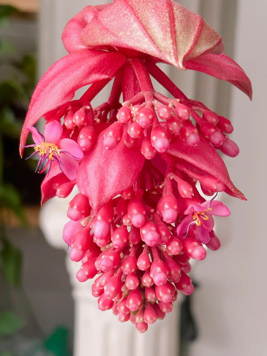 🌺 Nádherné květy : Vytváří zářivé, převislé trsy růžových květů, které připomínají jemné hrozny.🌱 Exotický vzhled : Dodává luxusní tropickou atmosféru vnitřním i venkovním prostorům.☀️ Miluje jasné světlo : Daří se jí na jasném, nepřímém slunečním světle nebo v částečně zastíněných venkovních podmínkách.🪴 Ideální do nádob : Ideální do květináčů, závěsných košů nebo jako výrazná pokojová rostlina.🌿 Celoroční zájem : Lesklá stálezelená zeleň zajišťuje krásu, i když rostlina nekvete.