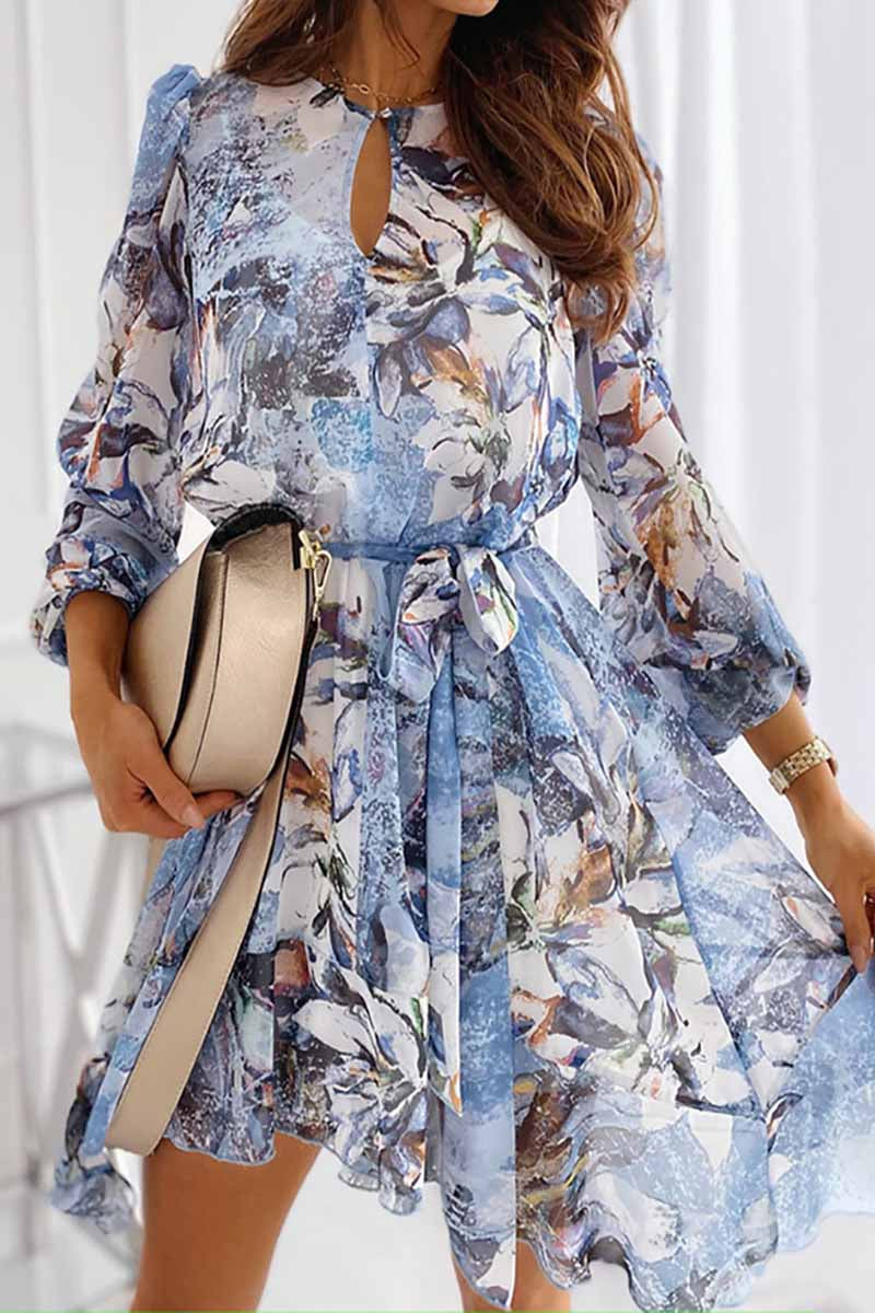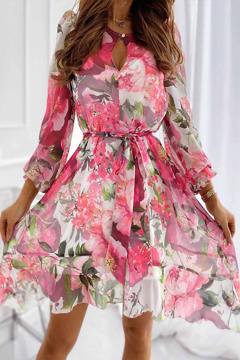 Dámské minišaty Bandeau s dlouhým rukávem s květinovým potiskem