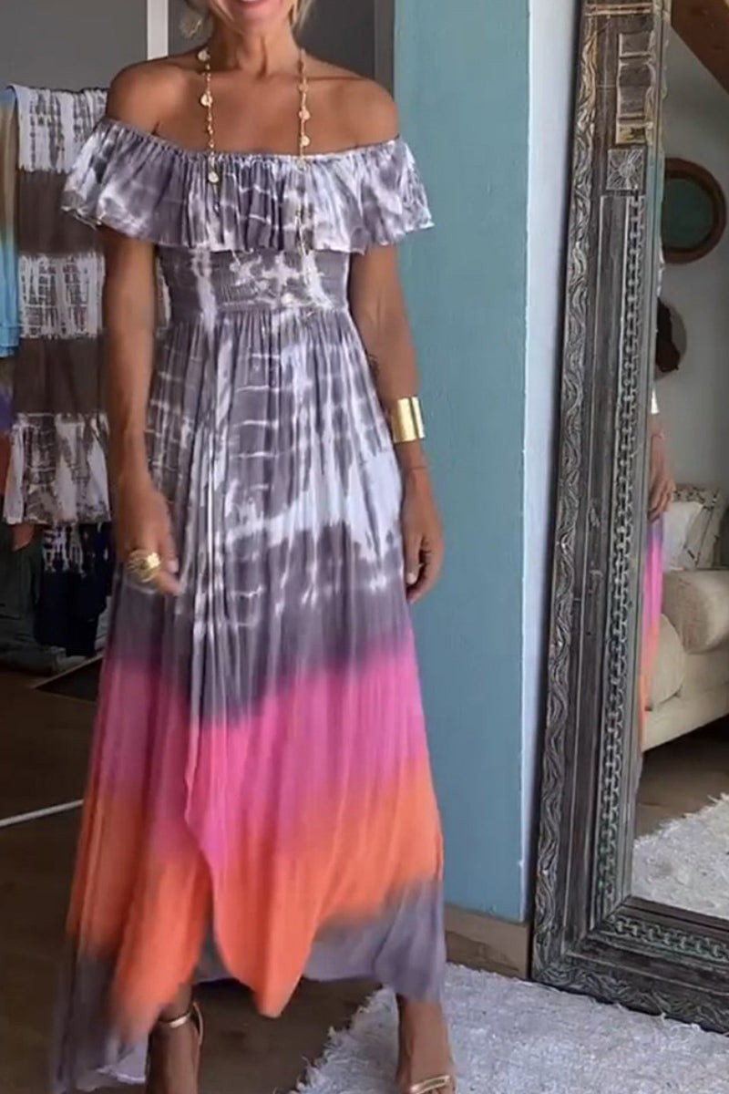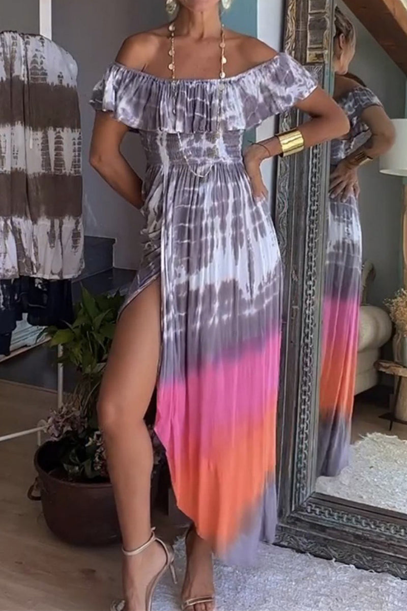 Dámské maxi šaty s rozparkem a kravatou bez zavazování přes rameno