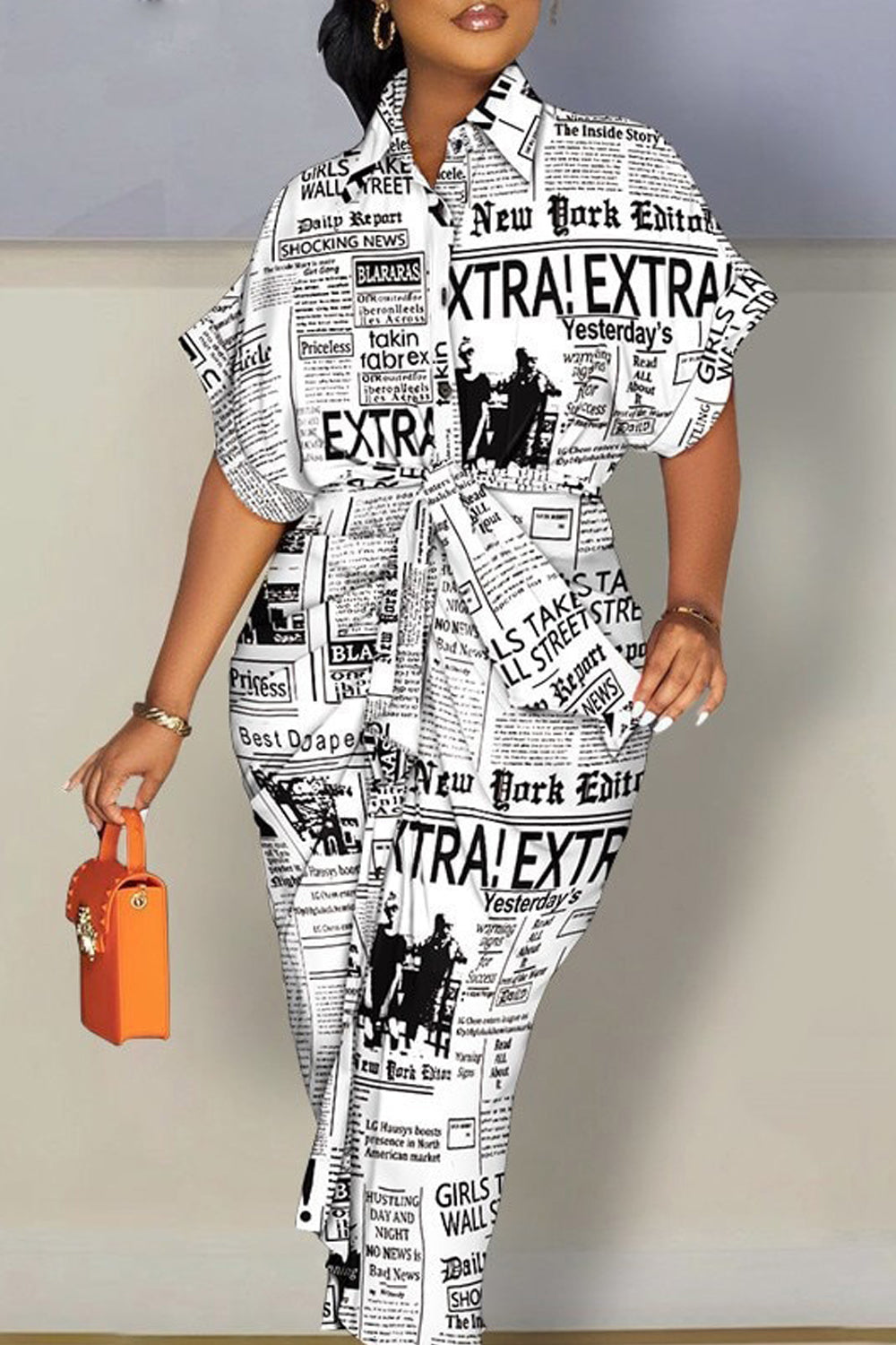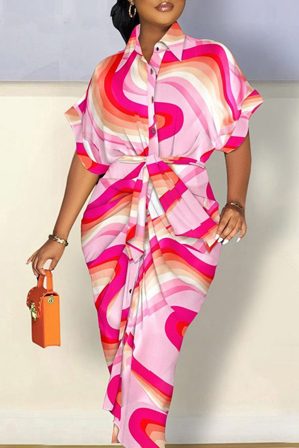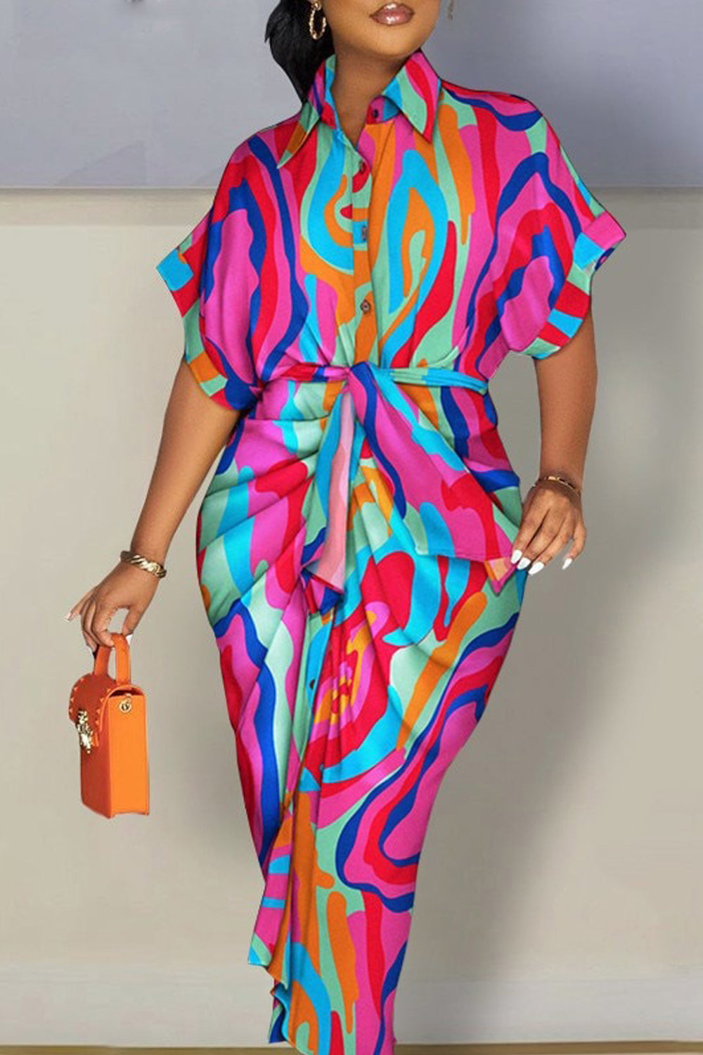 Dámské ležérní šaty s volným potiskem s jednořadou kravatou