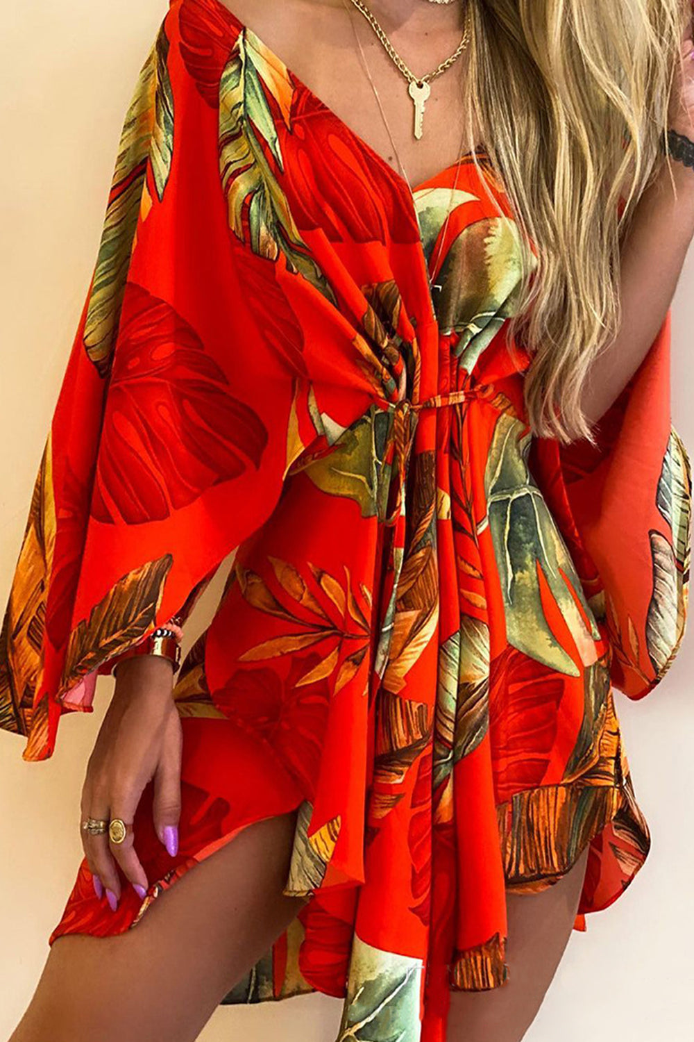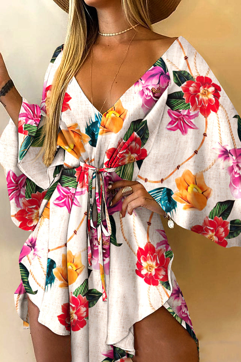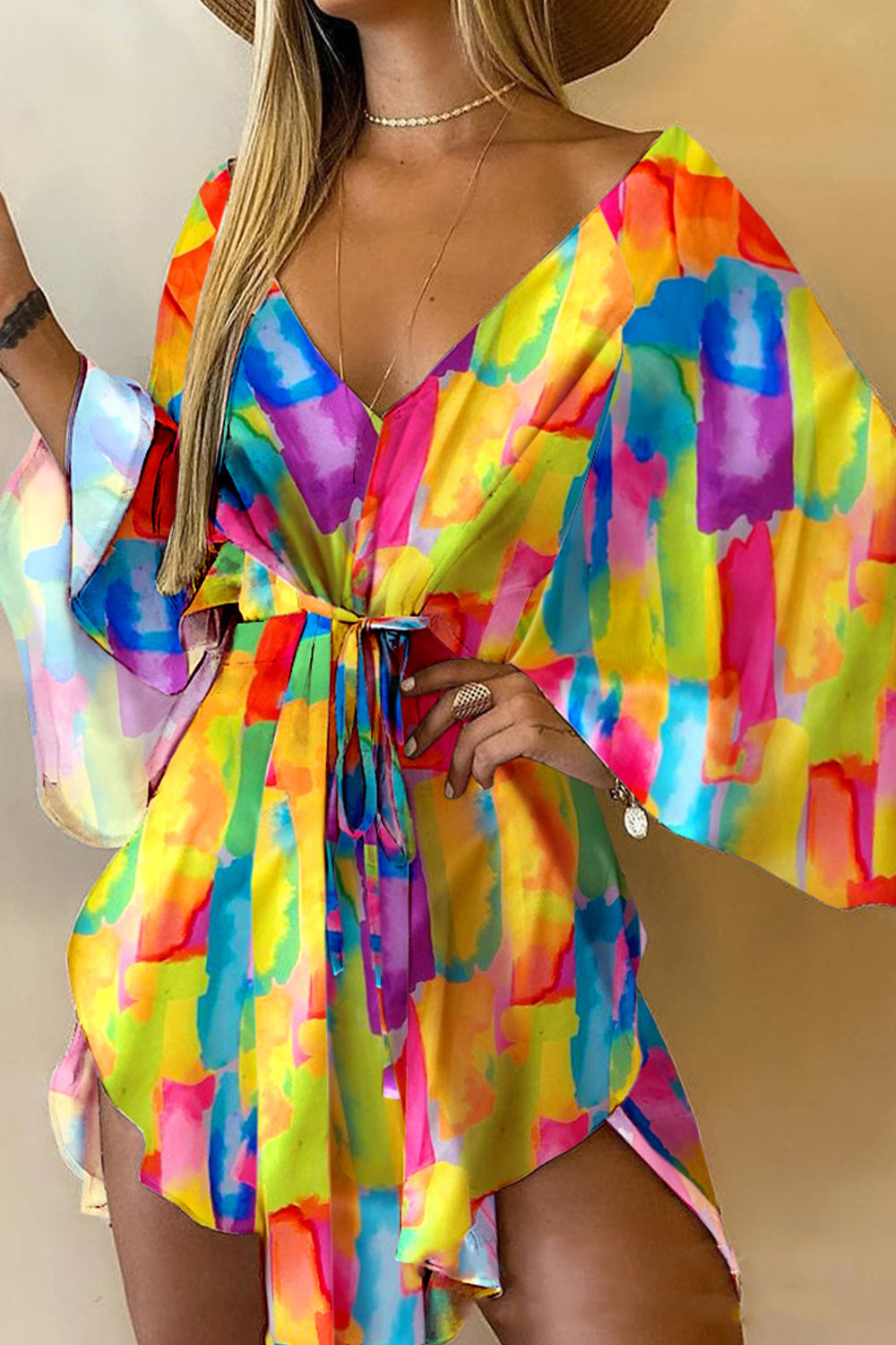 Dámské nepravidelné šaty s výstřihem do V s potiskem