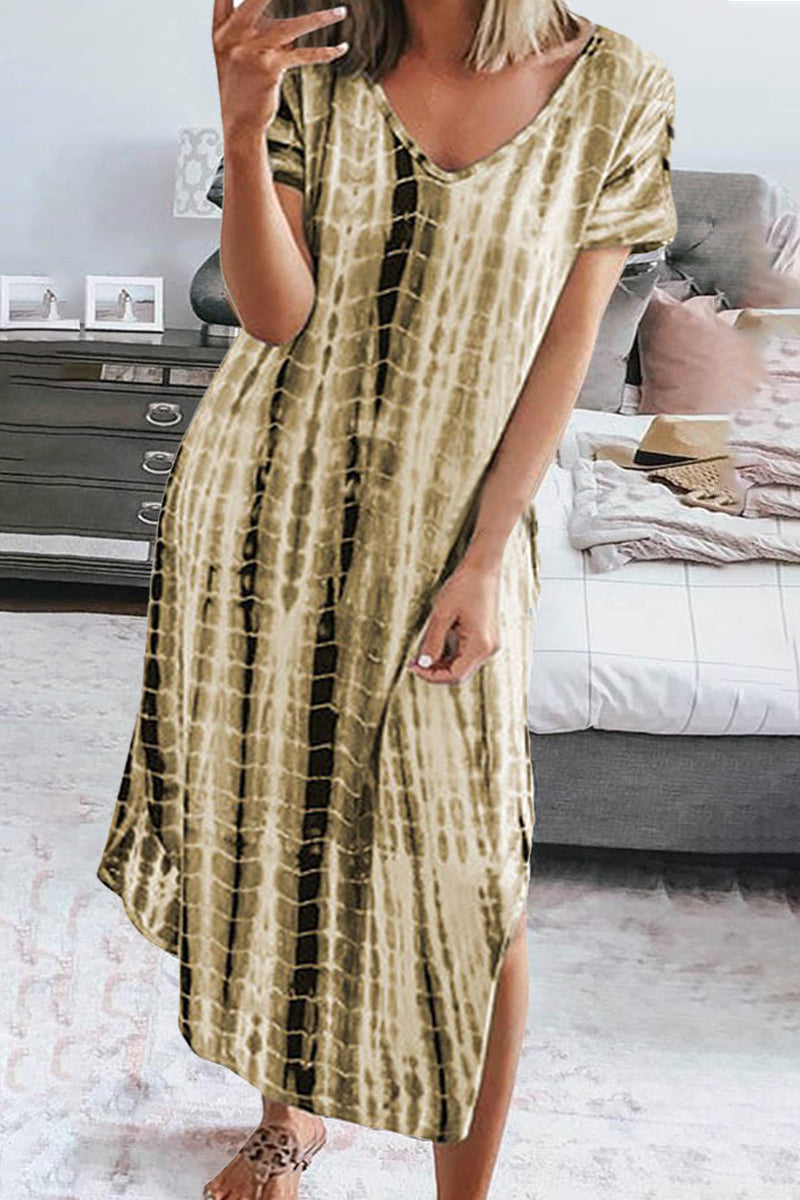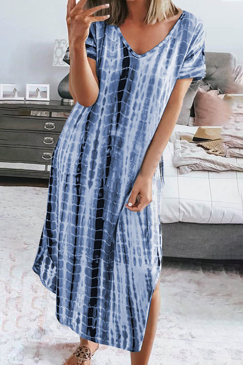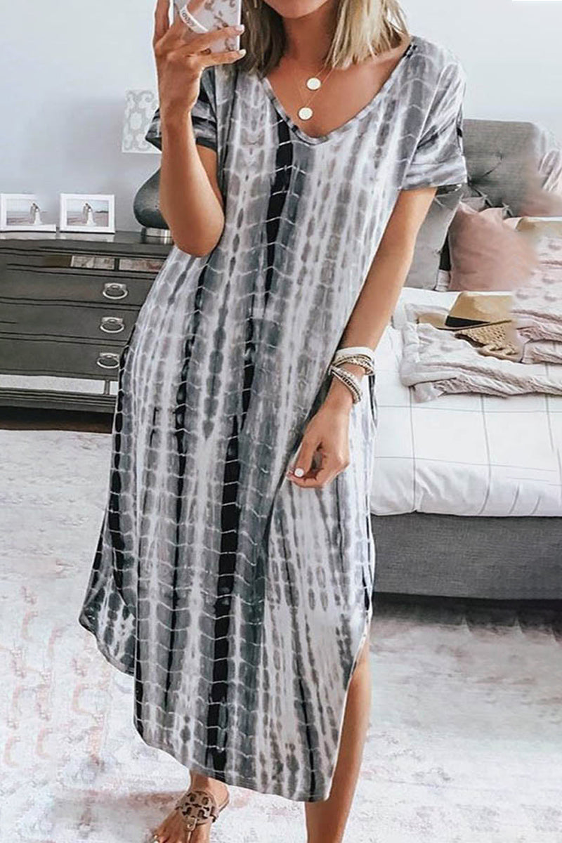 Dámské volné nepravidelné maxi šaty s výstřihem do V s výstřihem do V s potiskem