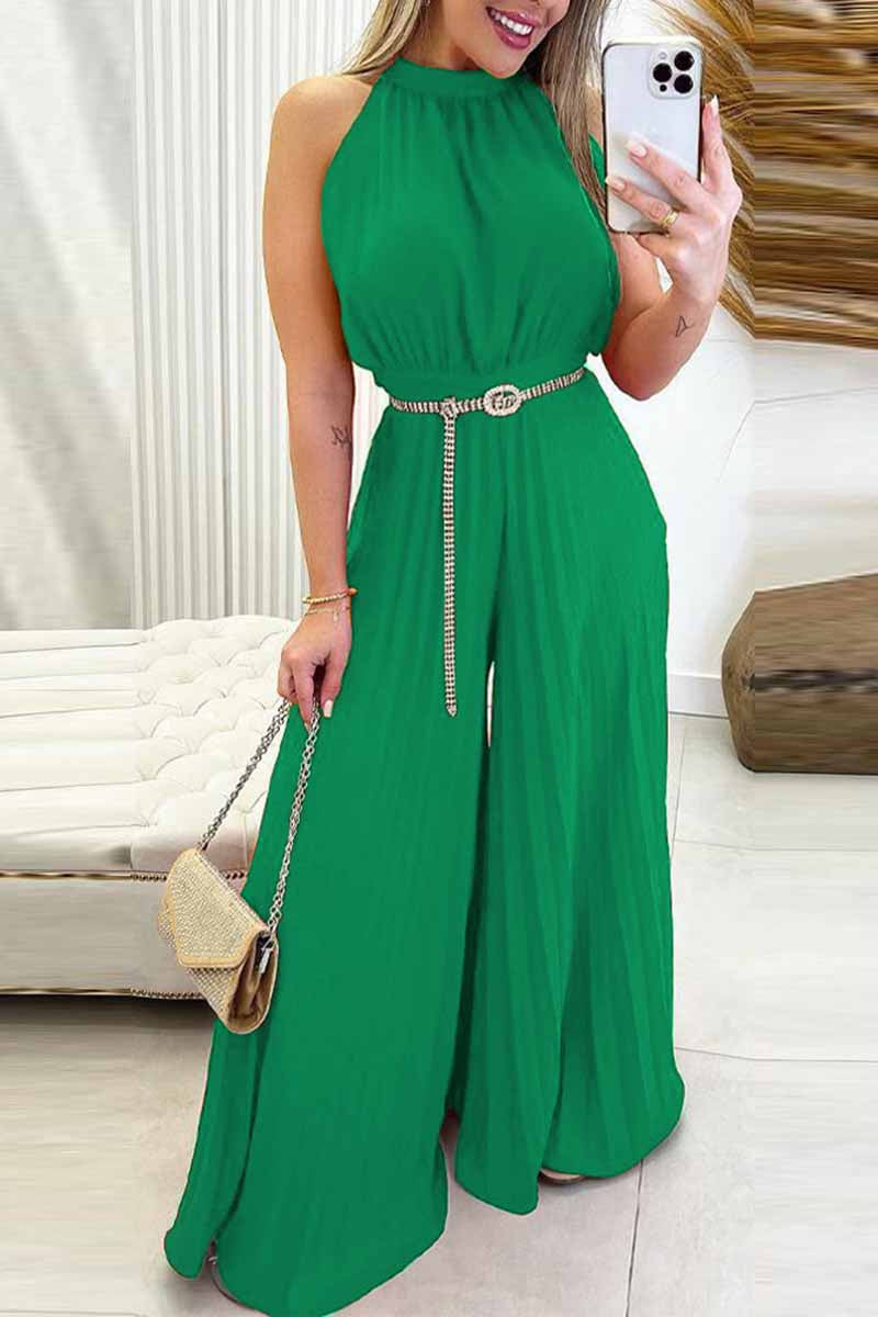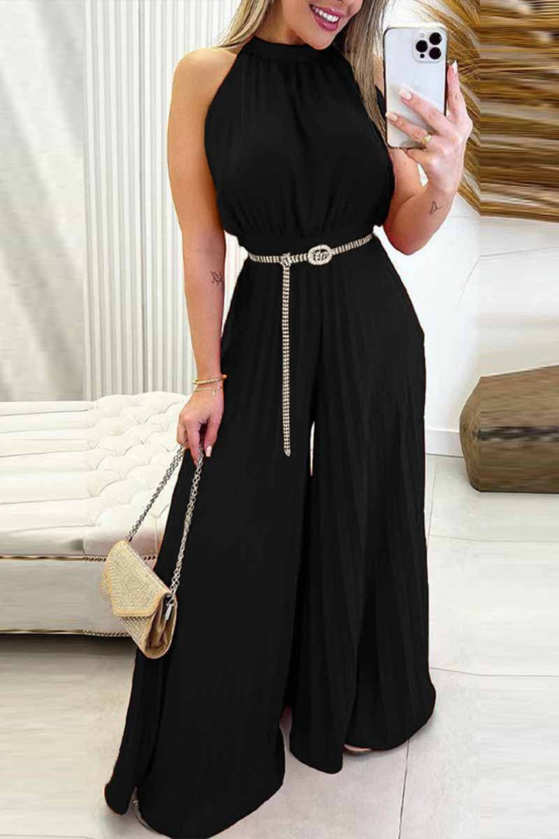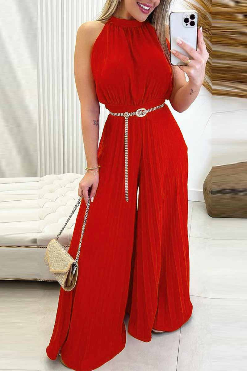Dámský módní lisovaný skládaný overal se širokými nohavicemi bez rukávů