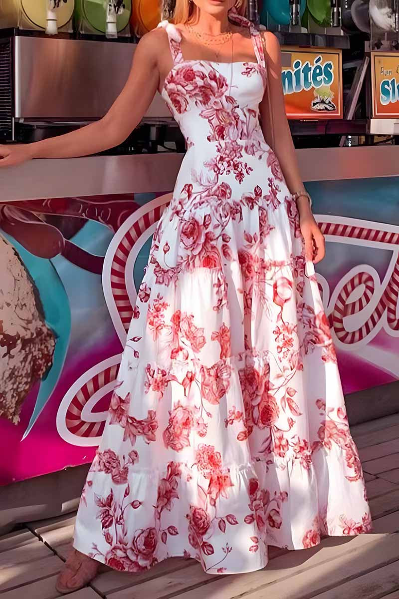 Dámské midi šaty bez ramínek s květinovým potiskem