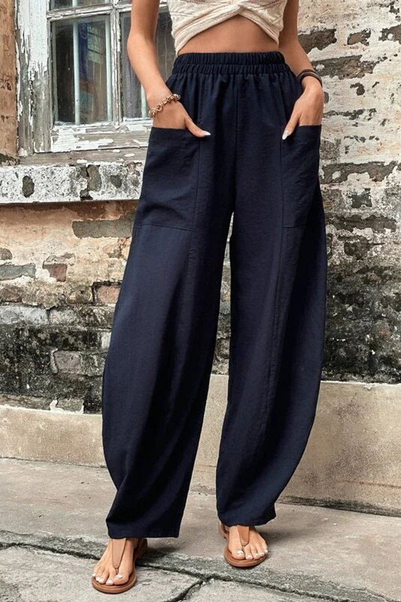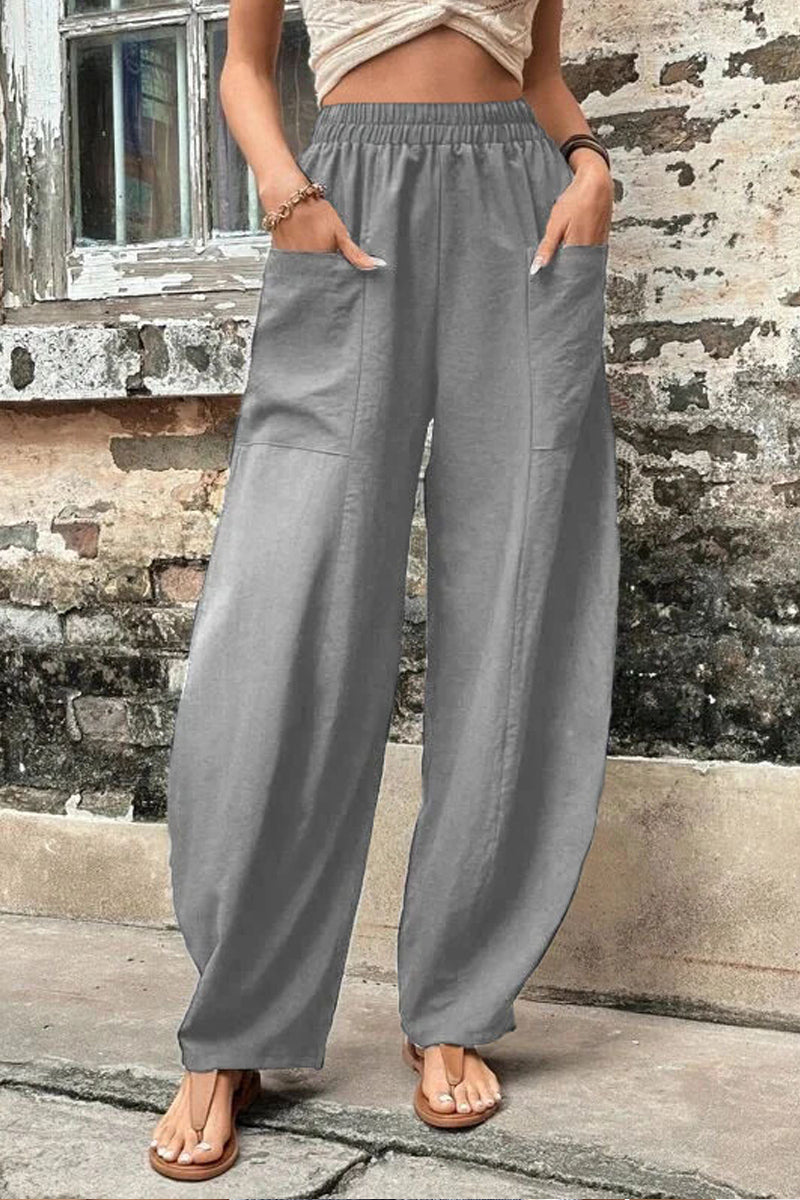 Dámské jednobarevné kapesní kalhoty pro volný čas