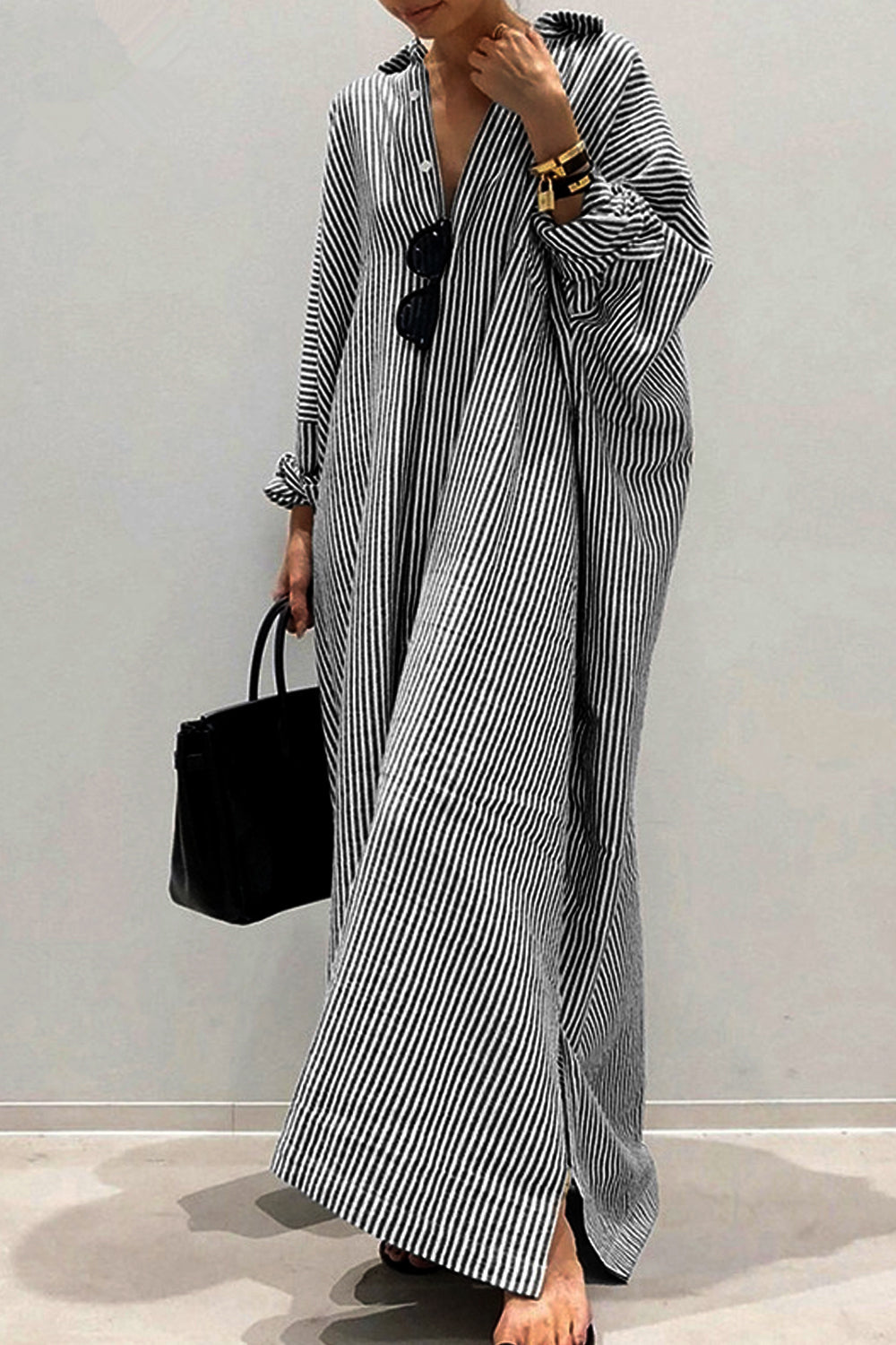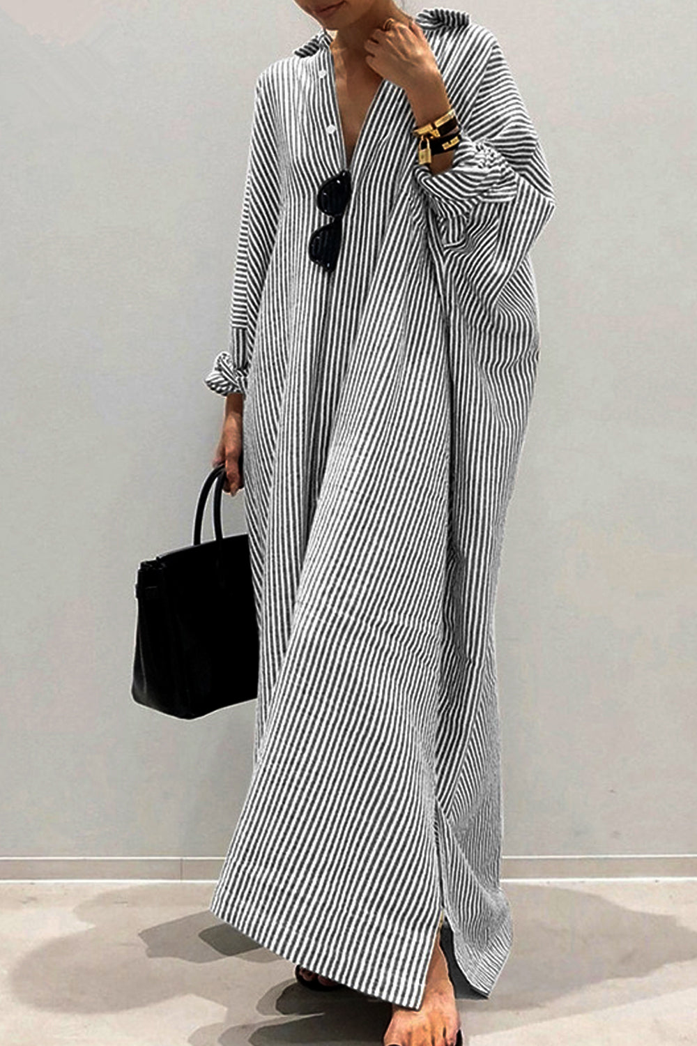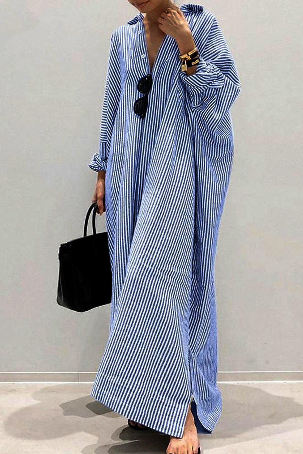 Dámské pruhované rovné košilové šaty s 3/4 rukávem