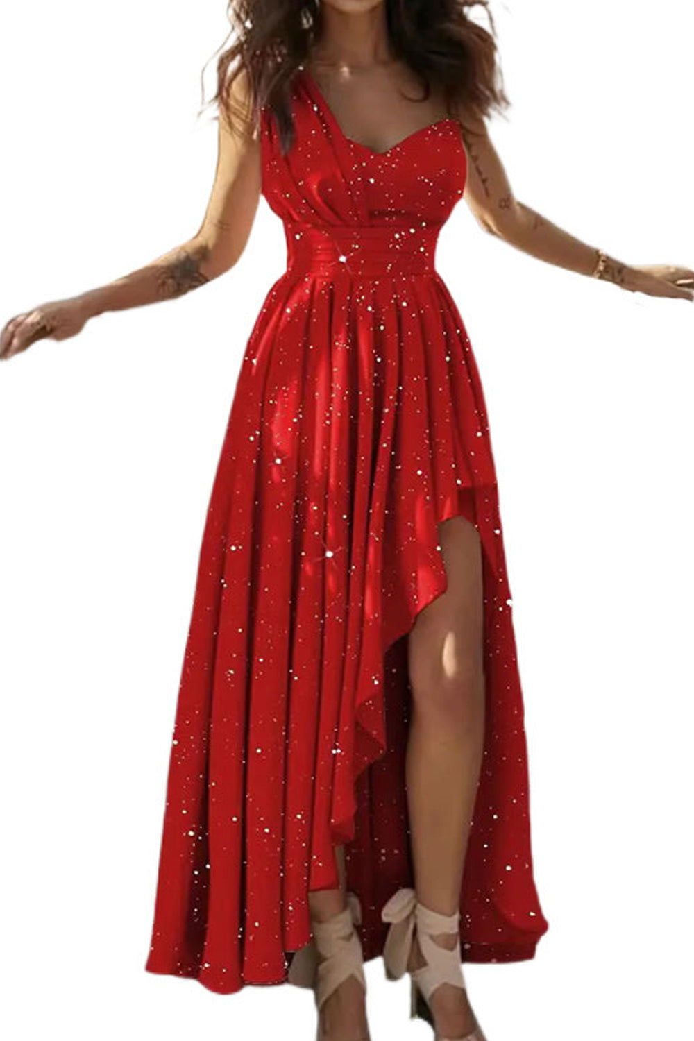 Dámské Nepravidelné Maxi Šaty Se Šikmými Rameny A Vysokým Pasem Bez Rukávů