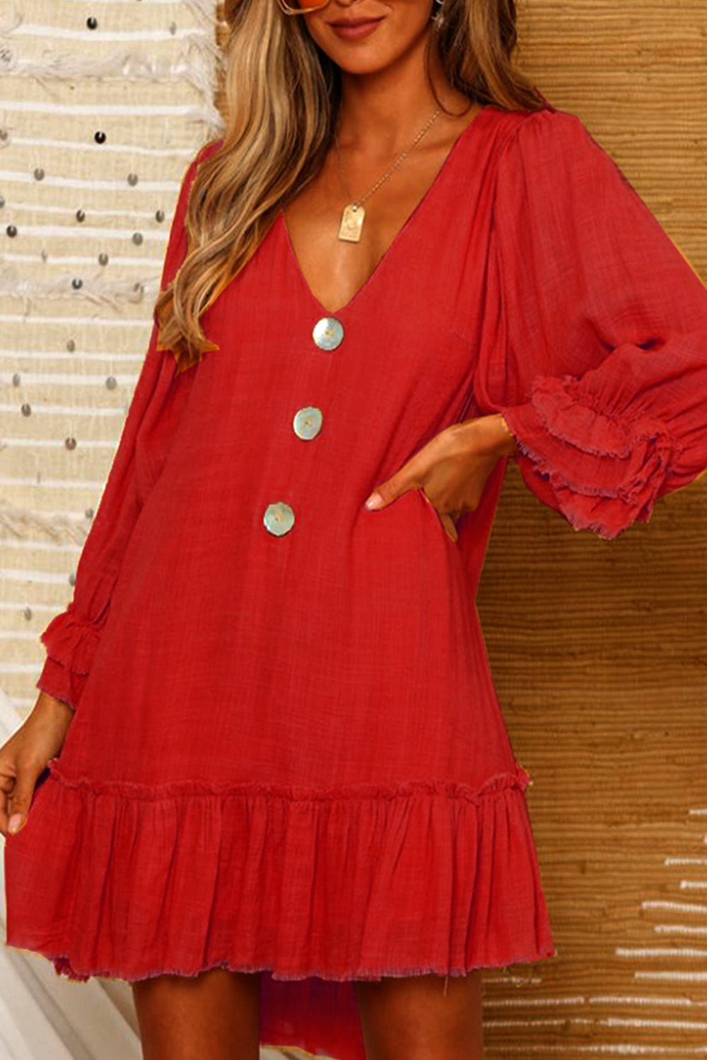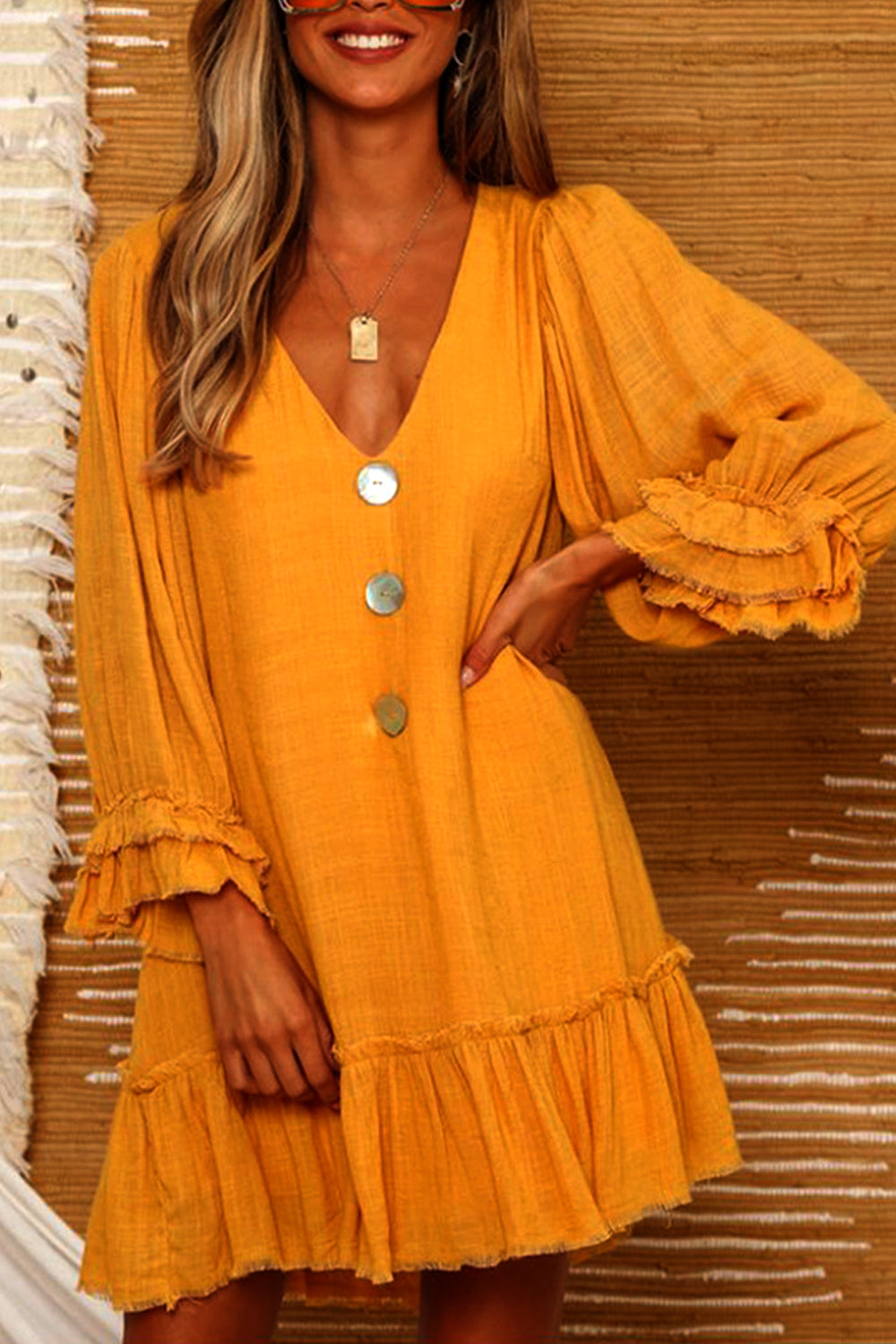 Dámské nepravidelné britské jednobarevné šaty s výstřihem do V