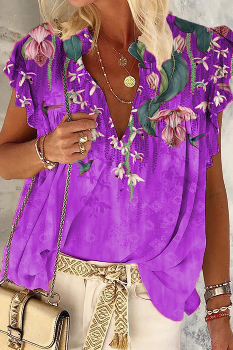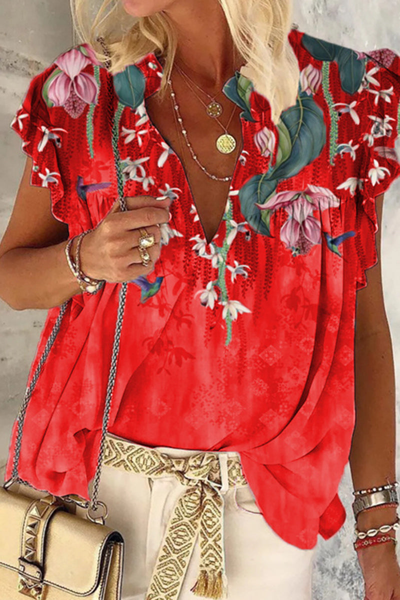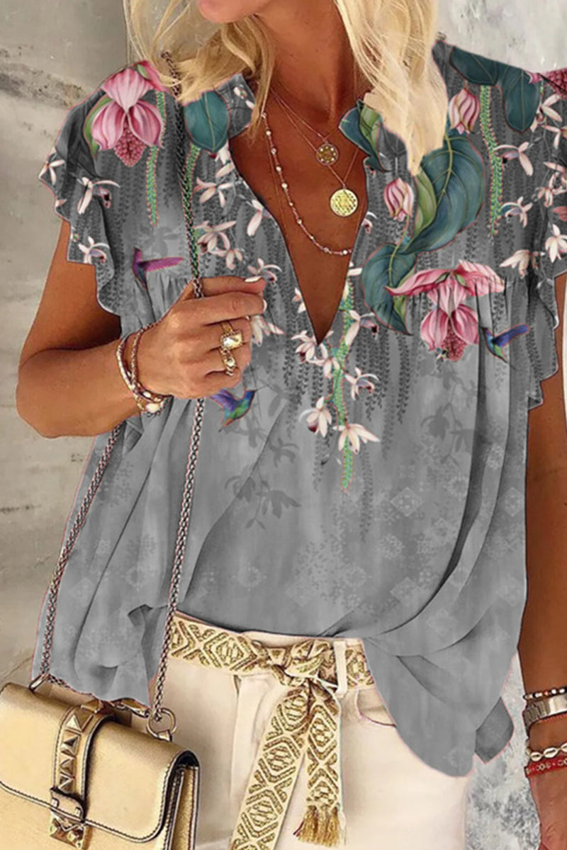 Dámské tričko s krátkým rukávem s potištěným výstřihem do V