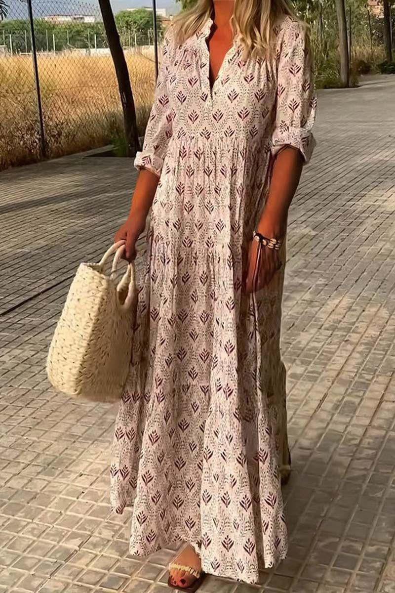 Dámské vintage šaty s límečkem, volné maxi šaty