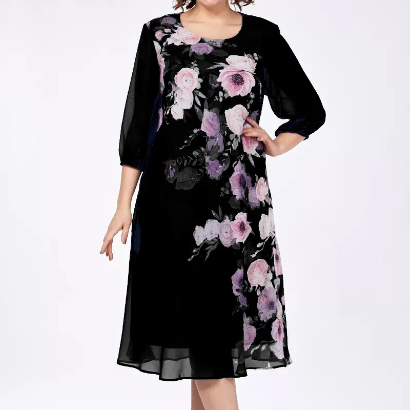 Balení obsahuje: 1*Elegantní dámské šaty s kulatým výstřihem a květinovým potiskem